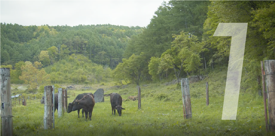 豊かな自然と安全な環境の中で育てられた牛は柔らかい肉質、キメの細かさ、口の中に入れるととろけるような味わいが特徴です。