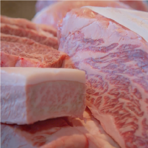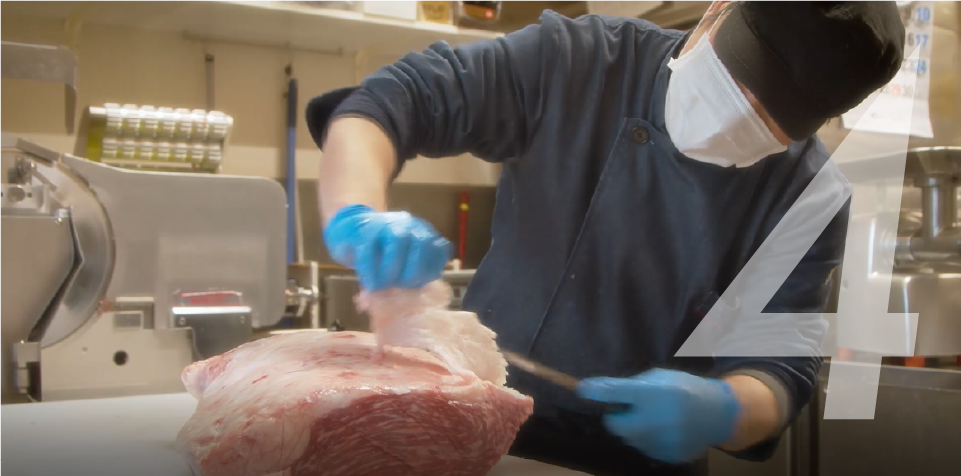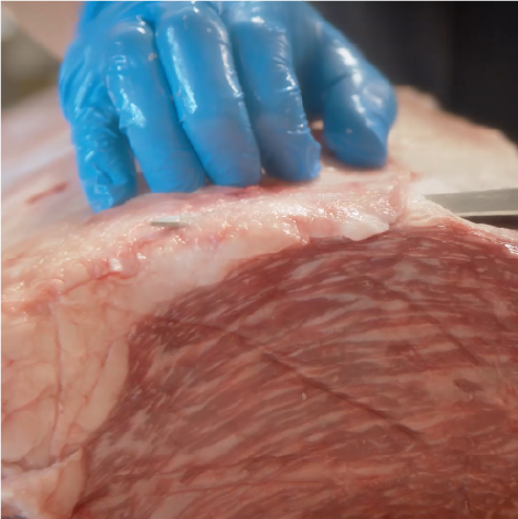 安全と衛生管理を期して鍛え抜かれた職人の技によりお肉を捌きカットしております。旨味のポテンシャルをより引き出すのに最も重要なカッティングの作業にはサシの入り具合などを見て切り分け素材を最大限に活かした熟練の技によって支えられております。